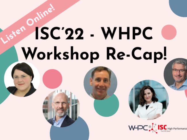 DetailsWomen in HPC – ISC’22 Workshop Recap – LISTEN NOW! https://whpctransfer.wpenginepowered.com/wp-content/uploads/2022/07/WHPC-ISC_22-Workshop-Re-Cap_-2022-07-12.mp3 Download and listen later. On July 12, 2022 our ISC22 keynote, invited speakers, early career presenters and committee volunteers gathered for a 1-hour rapid-fire re-cap of our first global, in-person workshop in over two years. Throughout this event this team kept circling back to…